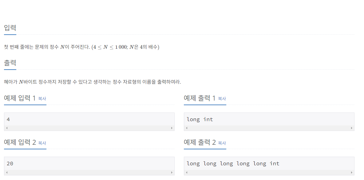 4의 배수일때 마다 "long" 문자열을 출력한 뒤 마지막에 "int"문자만 붙여주면 되는 문제다.