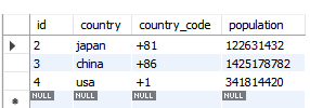 SELECT * FROM world 결과를 봤을 때 모든 결과 값을 확인할 수 있었는데
