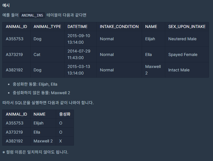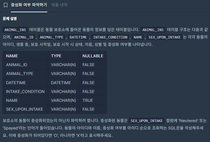 이번 문제는 프로그래머스 "중성화 여부 파악하기" SQL 문제다.