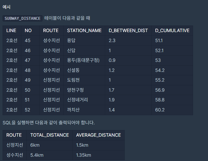이번 문제는 프로그래머스 "노선별 평균 역 사이 거리 조회하기" MySQL 문제다.